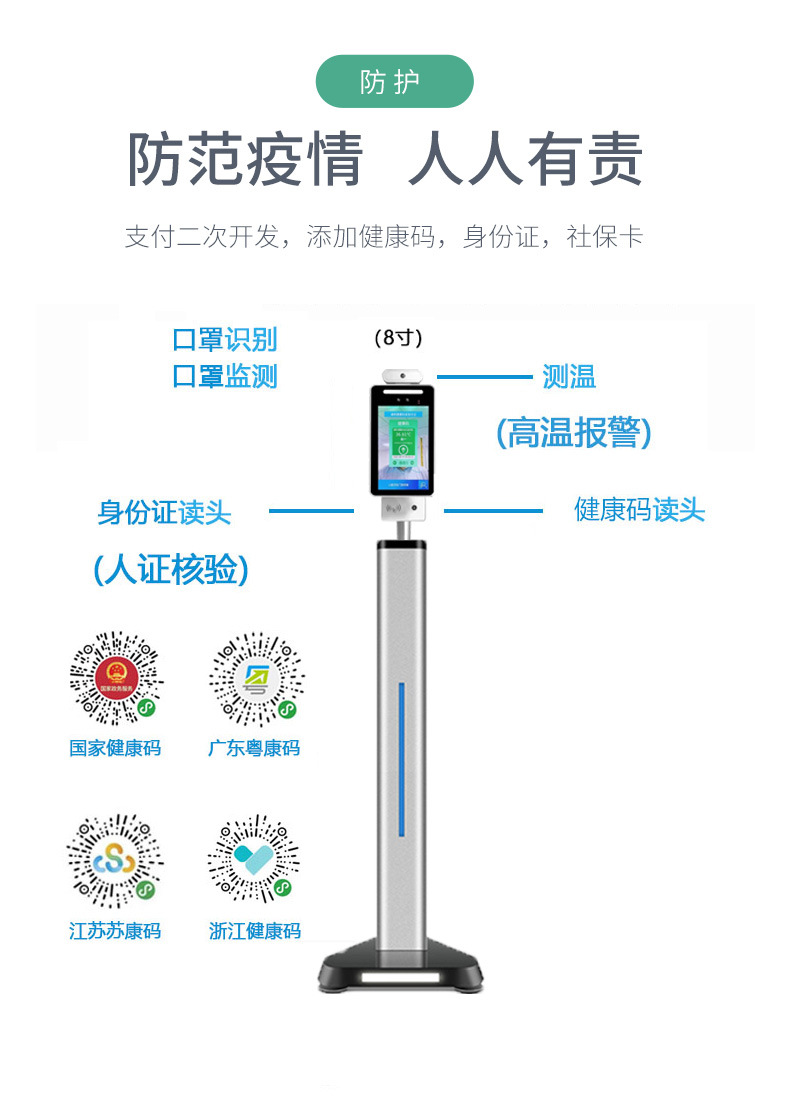 平板式人臉識別終端機采用全鋁合金外殼;8寸液晶顯示屏,雙目RGB+紅外攝像頭;搭配linux系統(tǒng),且提供豐富的接口協(xié)議方便客戶接入各類平臺。 整機產(chǎn)品已自帶PC端Web管理后臺,支持Windows、Mac OS 、Linux、平臺端通過瀏覽器,實現(xiàn)設(shè)備維護、時間設(shè)置、網(wǎng)絡(luò)設(shè)置、算法參數(shù)設(shè)置、人臉錄入、打卡記錄導(dǎo)出等功能。