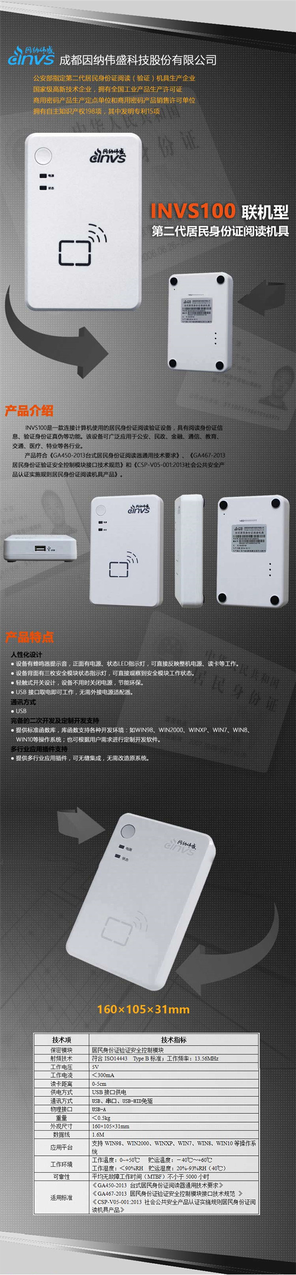 (*由于產品升級或其他原因,因納偉盛聯機型身份證閱讀器產品實際參數有可能變更,以實際產品為準。本文中的所有陳述、信息和建議也不構成任何明示或暗示的擔保)